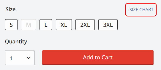 Size charts are featured on every product detail page just below the product description.